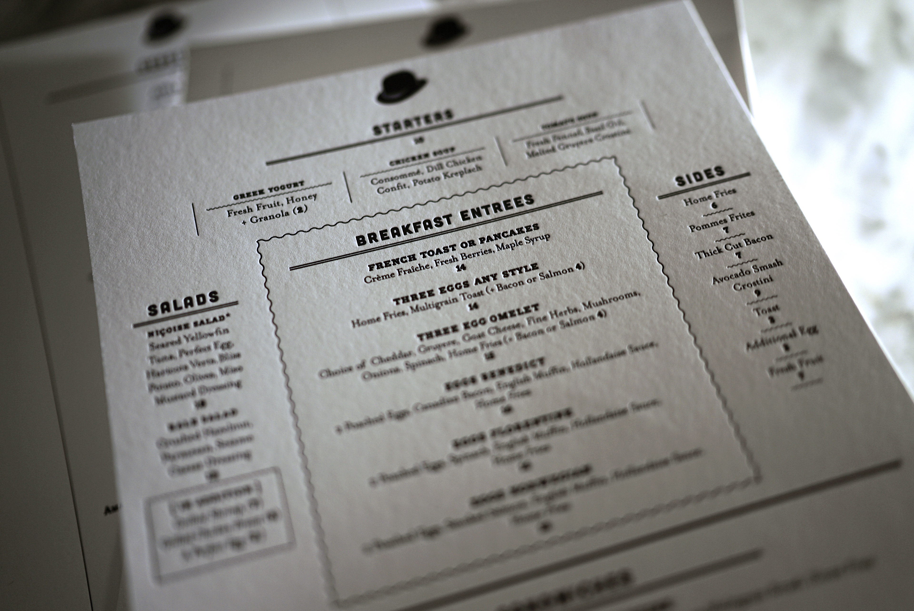 Design format created for a series of restaurant menus- for a new bistro in NYC's West Village, The Black Derby. Each menu within the system has been customized, utilizing elements unique to each individual menu.